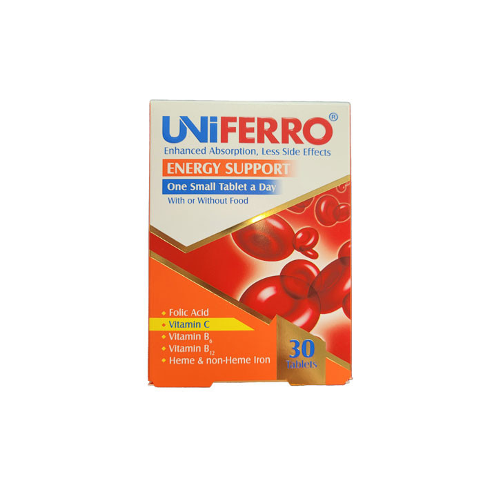 قرص یونی فرو ابیان دارو یک مکمل غذایی است که به تامین آهن مورد نیاز بدن و جلوگیری از کم خونی ناشی از فقر آهن کمک میکند. این مکمل غذایی حاوی ویتامین ث، فولیک اسید، ویتامین ب12 و ب6 نیز است. ساختار این قرص پلی ساکاریدی و پلی پپتیدی است. قرص یونی فرو ابیان دارو حاوی آهن است و به تقویت سطح آهن بدن کمک میکند. با مصرف منظم و طبق دستورات پزشک یا متخصص تغذیه، میتوانید نیازهای آهن بدن خود را تأمین کنید و از کم خونی جلوگیری کنید. همچنین، حاوی آهن هم و غیره است که میتواند عوارض گوارشی را کاهش دهد.