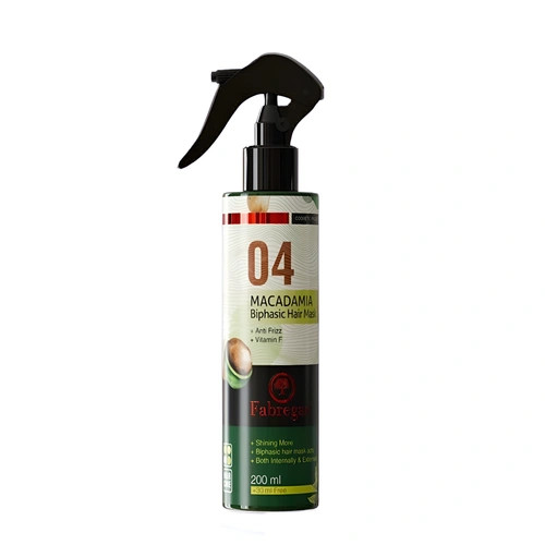 ماسک مو دوفاز ویتامینه ماکادمیا فابریگاس حاوی روغن ماکادمیا، پروتئینهای ابریشم، ویتامین E و سایر ترکیبات مغذی است که به موها رطوبت رسانده و از خشکی و شکنندگی آنها جلوگیری میکند. علاوه بر این، روغن ماکادمیا به دلیل دارا بودن اسیدهای چرب غنی، به ترمیم موهای آسیبدیده و جلوگیری از موخوره کمک شایانی میکند. پروتئینهای ابریشم نیز به موها استحکام بخشیده و از ریزش آنها جلوگیری میکنند. ویتامین E نیز یک آنتی اکسیدان قوی است که از موها در برابر آسیبهای محیطی محافظت میکند. فرمولاسیون سبک و غیرچرب این ماسک، باعث میشود تا به راحتی جذب موها شده و حس سنگینی و چسبندگی ایجاد نکند.