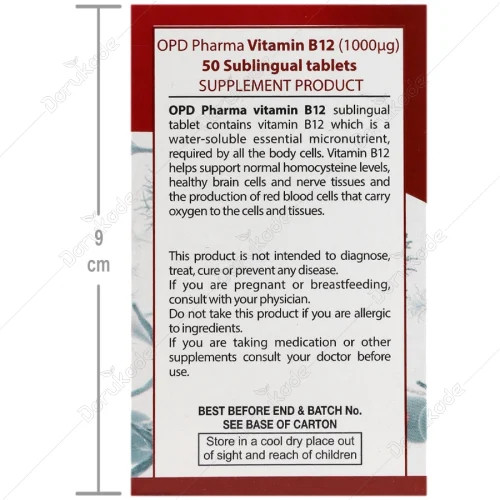 قرص زیر زبانی ویتامین B12 او پی دی فارما در قوطیهای 50 عددی تولید شده و توسط شرکت داروسازی امید پارسینا دماوند (OPD Pharma) در ایران به بازار عرضه میشود.