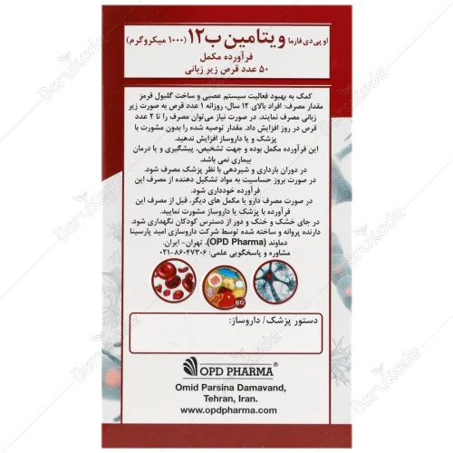 قرص زیر زبانی ویتامین B12 او پی دی فارما