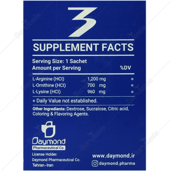 پودر پدیاموند مکملی با کیفیت است که دارای 1200 میلی گرم ال آرژنین، 960 میلی گرم ال لیزین و 700 میلی گرم ال اورنیتین است. هر 3 آمینو اسید گفته شده به فرم هیدرو کلراید در پدیا موند وجود دارد.