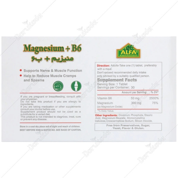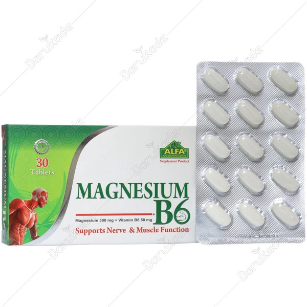 قرص منیزیم و ویتامین ب6، مکملی مناسب جهت حفظ سلامت سیستم عصبی بدن و کاهش گرفتگیهای عضلانی، حاوی 300 میلی گرم منیزیم و 50 میلی گرم ویتامین B6 میباشد.