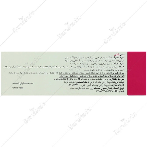ففول پلاس به ازای هر کپسول خود 27 میلی گرم آهن المنتال (خالص) تامین می کند.