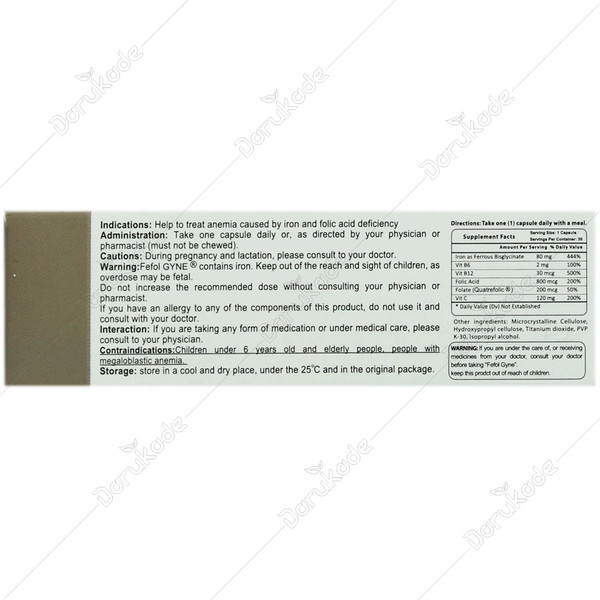 در کنار ترکیبات اصلی و مواد موثره، ترکیباتی در نقش مواد جانبی (کمکی و غیر موثره) به مکمل fefol gyne افزوده شدهاند که شامل موارد زیر است: