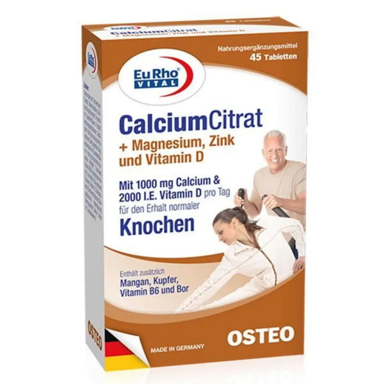یوروویتال کلسیم سیترات قرص 45 عددی یک مکمل غذایی است که حاوی کلسیم سیترات است.