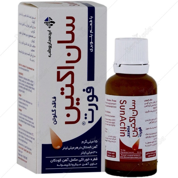 قطره سان اکتین فورت 30 میلی لیتری ایده دارو طب با طعم بلوبری حاوی آهن بوده و نقش موثری در تامین آهن، پیشگیری از کم خونی و رفع کمبود آهن کودکان و نوزادان دارد. قطره سان اکتین فورت دارای فرم آهن خوراکی میکروانکپسوله می باشد که جذب بیشتری داشته و همچنین عوارض سایر فرم های آهن مثل سیاه شدن دندان و عوارض گوارشی را ایجاد نمی کند. این مکمل فاقد الکل، قند، گلوتن، لاکتوز و رنگ مصنوعی بوده، طعم فلزی در دهان ایجاد نمی کند و برای کودکان با سن 4 ماه و بالاتر مناسب می باشد.