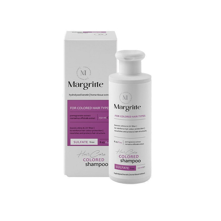 شامپو موهای رنگ شده مارگریت حاوی کراتین هیدرولیز شده و عصاره انار برای حفظ رنگ و سلامت موهای رنگ شده طراحی و تولید شده است. این شامپو علاوه بر محافظت و تقویت ساختار موها به تثبیت و تداوم رنگ موها کمک میکند و با ایجاد لایه محافظ بر روی تار مو ضمن ترمیم اثرات مخرب رنگ مو، موجب درخشندگی و زیبایی آنها میشود. همچنین ترکیبات موثری که در این شامپو وجود دارند میتوانند اثرات مخرب اشعههای UV را خنثی نموده و به طور کامل از موها مراقبت نمایند. شامپو فاقد سولفات موهای رنگ شده مارگریت با رطوبت رسانی بسیار عمیق باعث حفظ سلامت فولیکولهای مو میشود و با داشتن ترکیبات ایمن برای انواع موهای خشک و چربی که رنگ شدهاند مناسب است.