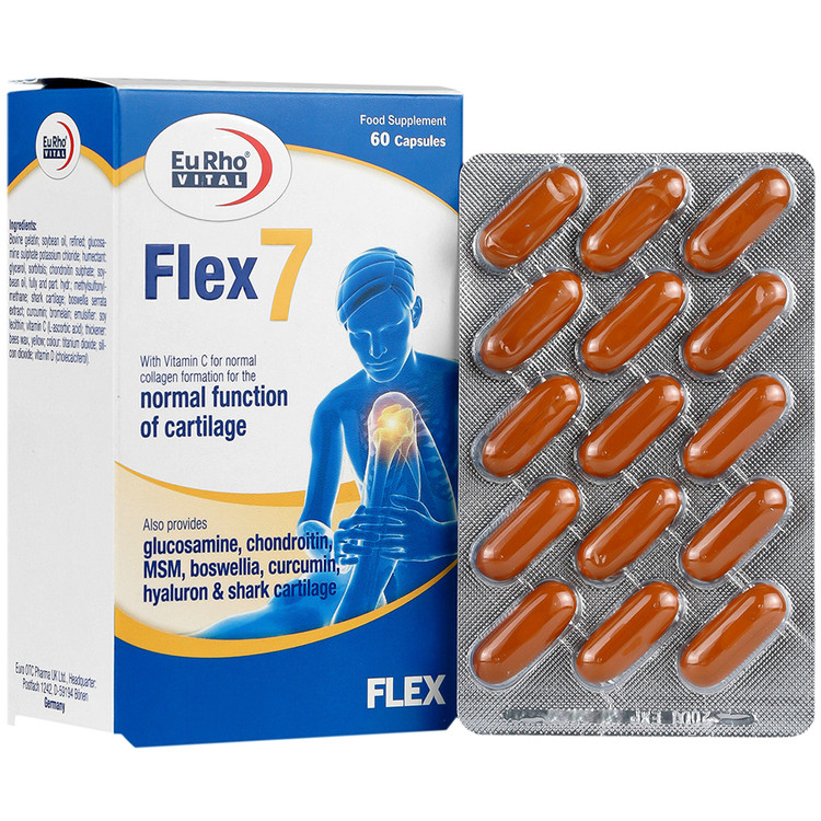 کپسول فلکس 7 یوروویتال حاوی غضروف کوسه ماهی است که با داشتن کلاژن و گلیکوزآمینوگلیکانها به تقویت ساختار مفاصل کمک میکند. ویتامین C موجود در این محصول به عنوان یک آنتیاکسیدان، سیستم ایمنی را تقویت کرده و التهاب را کاهش میدهد.