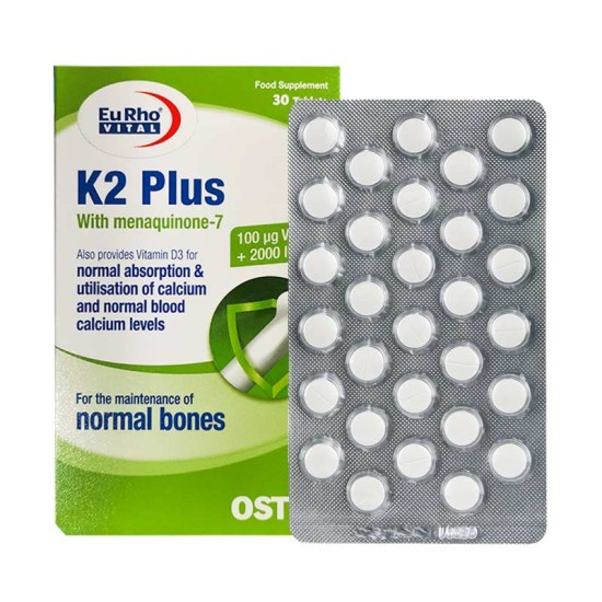 ویتامین K2 بهویژه در تحریک پروتئینهای خاصی در بدن مانند استئوکلسین و ماتریک گلوکوسامینوگلیکان (MGP) نقش دارد که مسئول جذب کلسیم و هدایت آن به بافتهای استخوانی هستند. این ویتامین از تجمع کلسیم در بافتهای نرم مانند رگها جلوگیری میکند و باعث حفظ سلامت قلب میشود. - ویتامین D3: