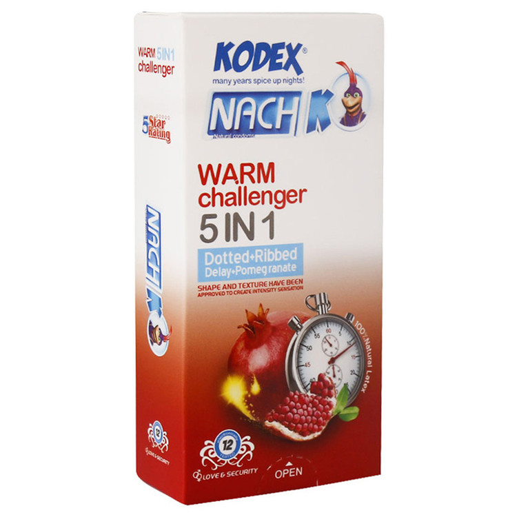 خرید کاندوم کدکس تاخیری خاردار شیاردار اناری WARM CHALLENGER، کاندوم 5 کاره کدکس نسل جدید محصولات ناچ-کدکس می باشد که با عنوان وارم چلنجر با اثری دو برابر در جهت تنگ شدن و منقبض کردن واژن تولید شده است. که برای افزایش لذت این کاندوم با منقبض کردن دیوارههای داخلی واژن و القا حس گرما به آقایان، تحریک بیشتری را به همراه دارد. به علاوه رایحه دلپذیر به همراه مواد روان کننده آن موجب میشود تا خاطرهای ماندگار در ذهن شما ثبت شود. خرید کاندوم تنگ کننده دوبل برای افرادی توصیه میشود که خواهان رابطه جنسی لذت بخشتر و اثری ماندگارتر در ذهنشان هستند. در پاسخ به این سوال که کدکس چیست ؟ باید بگوییم ناچ کدکس تنها کاندومی است که از لاتکس صد در صد طبیعی تولید میشود که خود از مادهای پلاستیک مانند ولی طبیعی از یک درخت به دست میآید. به علت همین ویژگی کاندومهایی نظیر کاندوم Warm Challenger ساخته شده از این ترکیب به آسانی پاره نمیشوند.