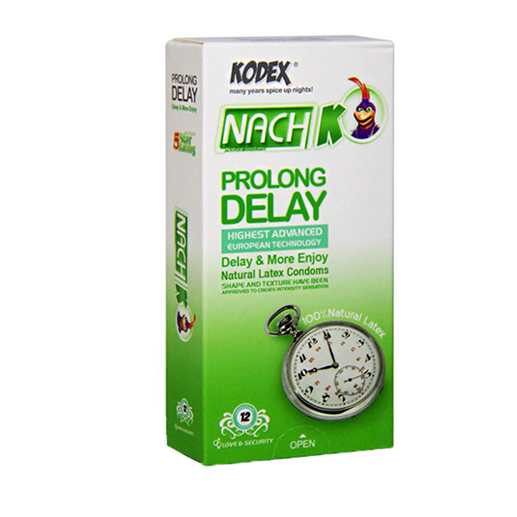 کاندوم کدکس تاخیری طولانی PROLONG DELAY، کاندوم کدکس تاخیری از لاتکس فوق العاده نازک ساخته شده است و با استفاده از میزان مناسب پودر بنزوکائین جهت ایجاد تاخیر بیشتر در انزال، امکان تجربه یک رابطه طولانی تر را به ارمغان می آورد. در این محصول از لوبریکنت تخصصی و مرطوب به میزان دو برابر استفاده شده است تا روان کنندگی بیشتری بوجود آورد.